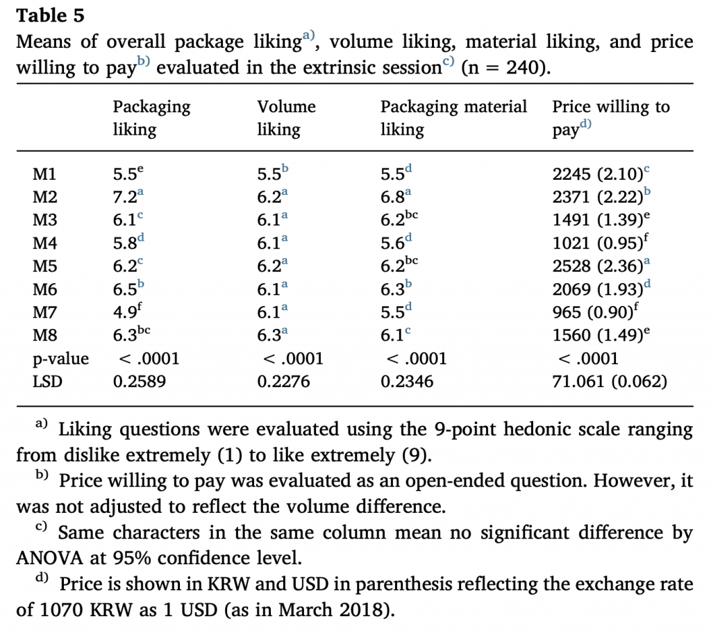 - 样品的消费者喜好度:当消费者不喜欢某产品的风味时,包装无法对喜好度产生积极的影响(不喜欢口味的话,包装再好看可能也无法提升消费者对该产品的喜好度。)。